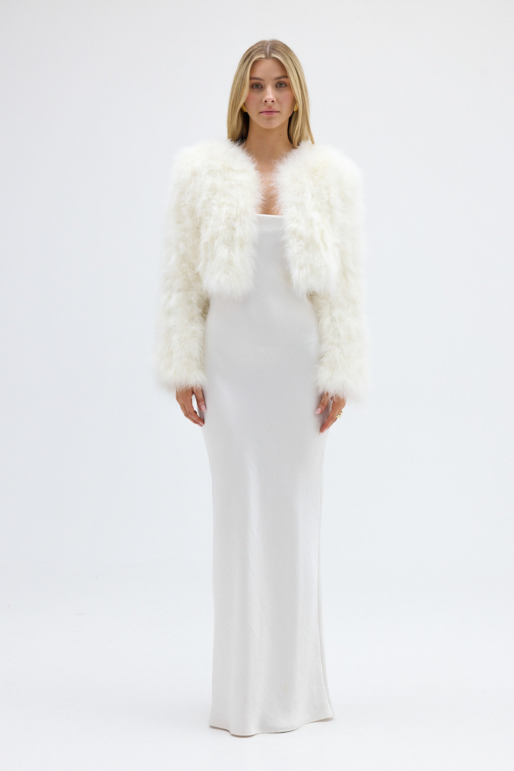 The perfect blend of strong shoulder structure and flattering feminine cropped length, the Marabou feather jacket oozes sophistication and style. Perfect for a chilly winter’s evening, the Manhattan can be dressed up or down no matter the occasion. Pair with our for a statement party loo.