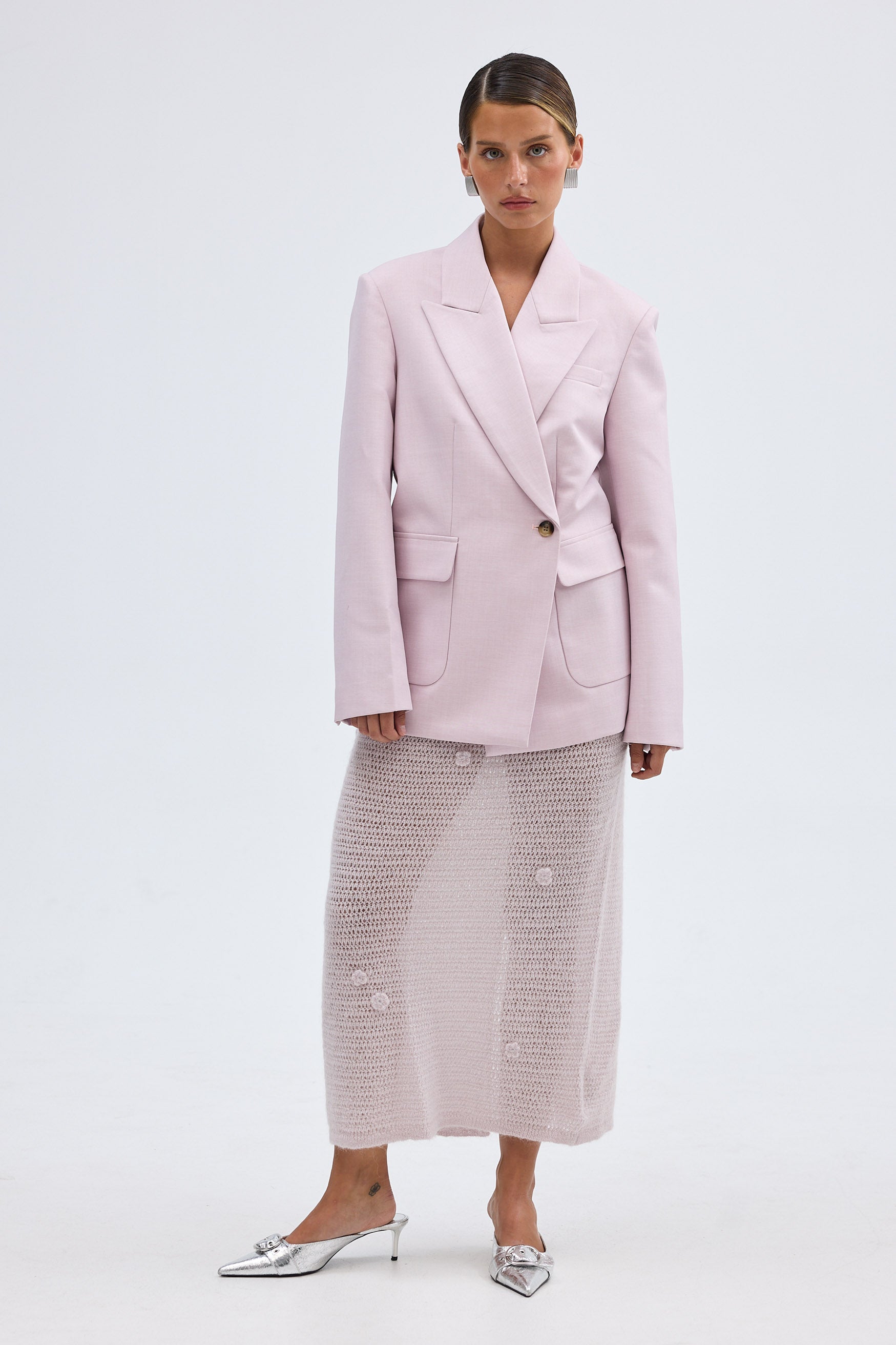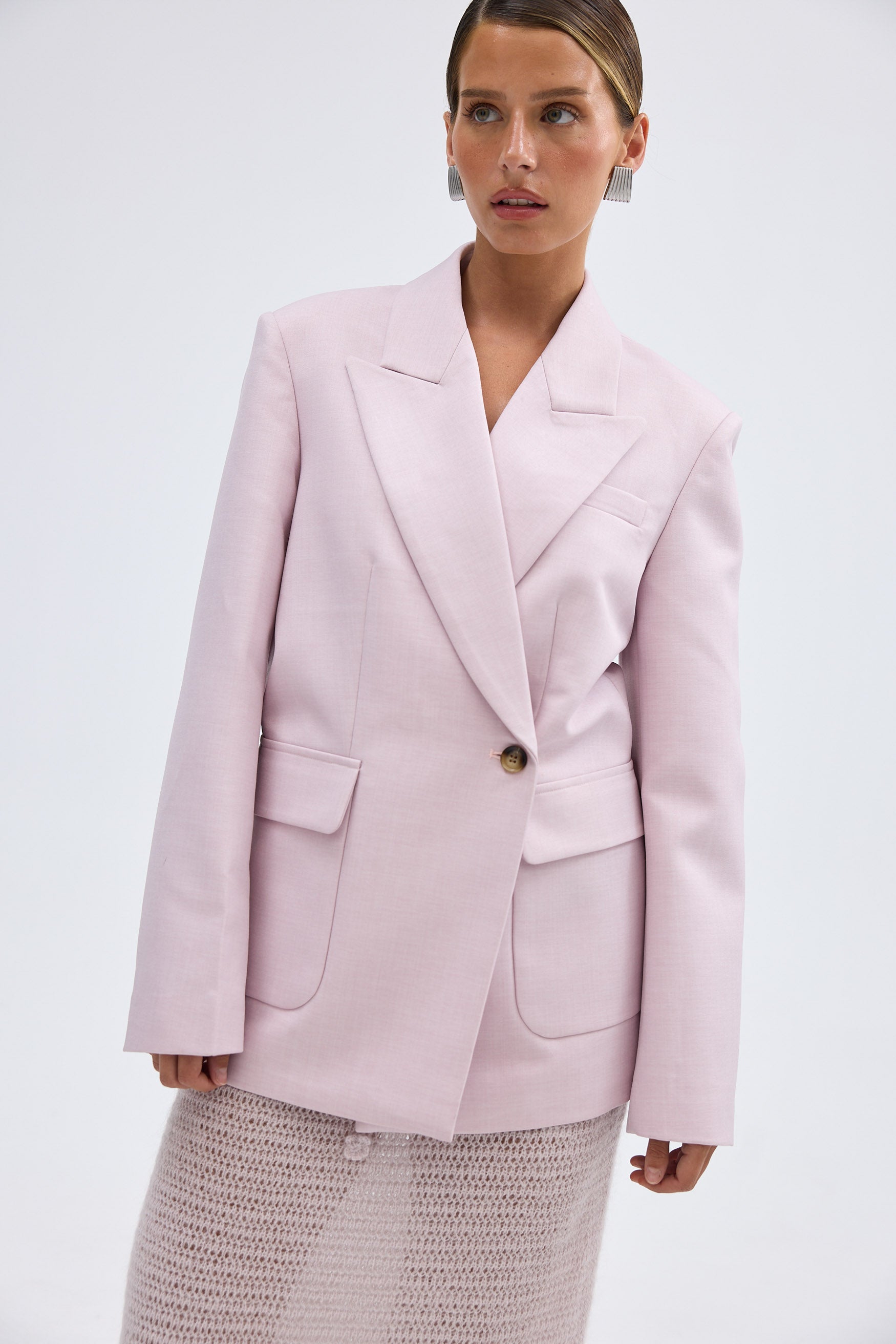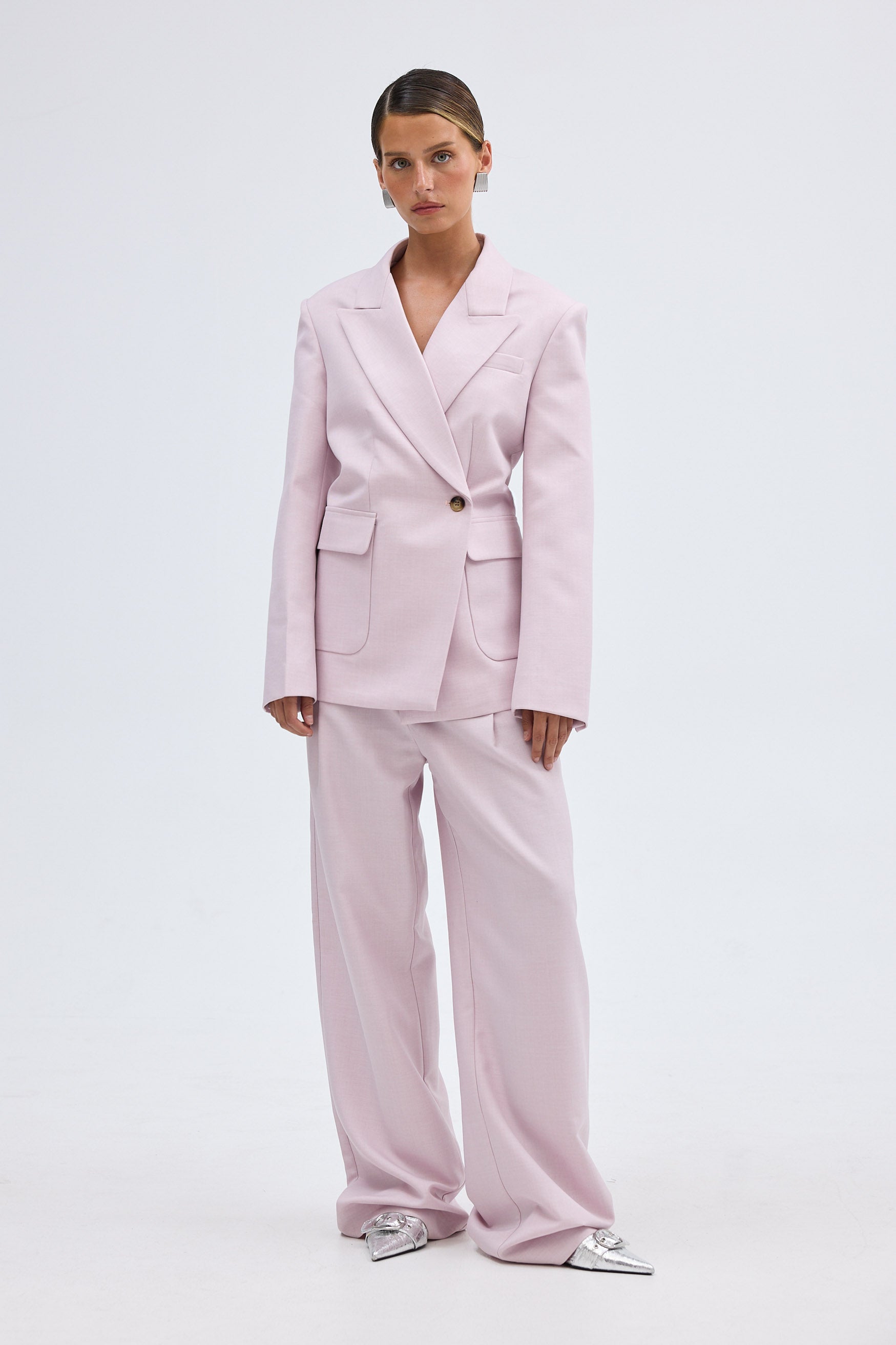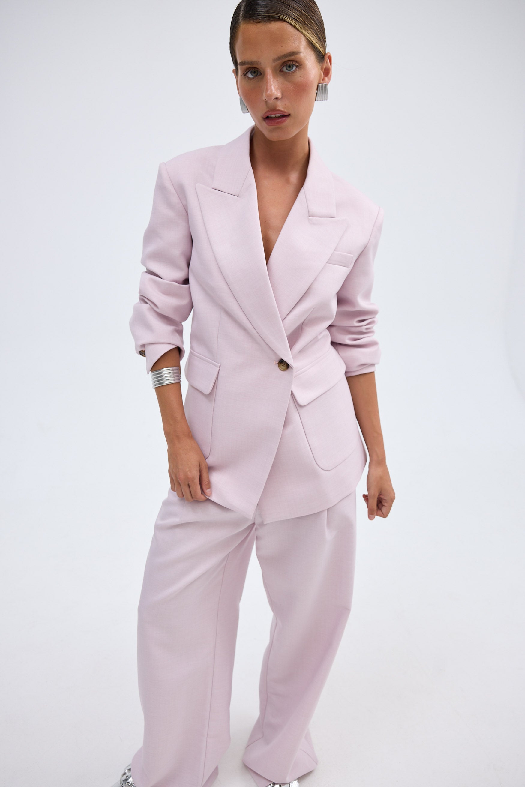 The Belle Blazer is the perfect balance of timeless tailoring and modern femininity. Reimagined with an asymmetric single-button closure, this soft lilac blazer features a sharp lapel collar and a relaxed yet structured silhouette. Dress it up with the Belle Pant for a sleek co-ord look or pair it with jeans for chic off-duty style.
