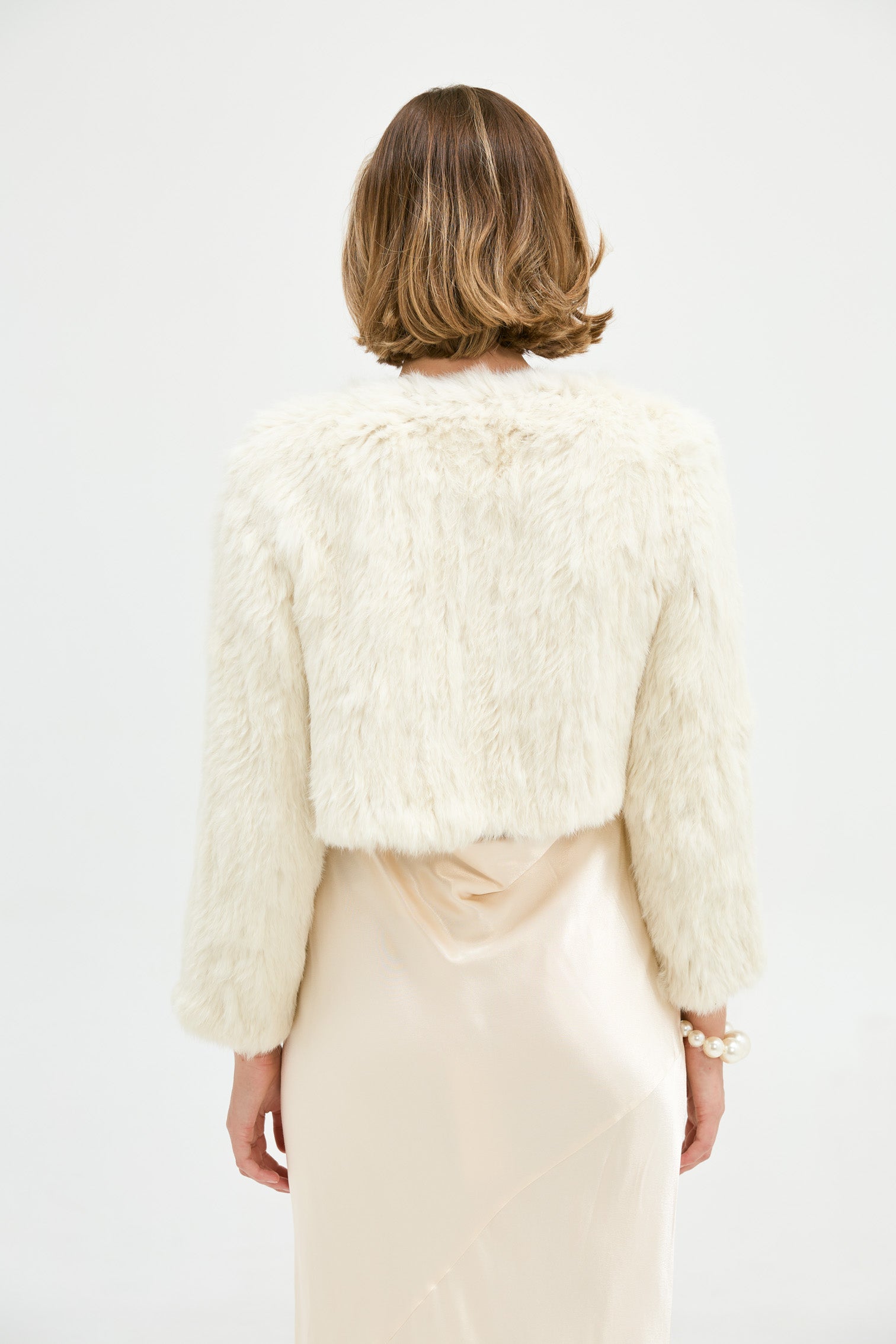 The Lola Jacket is the perfectly cropped evening jacket. Made from premium faux fur this special, cosy piece has been hand knit to create a warm but light weight jacket. This piece is the perfect option for a special occasion, wedding or even dressy/casual look with your favourite jeans.