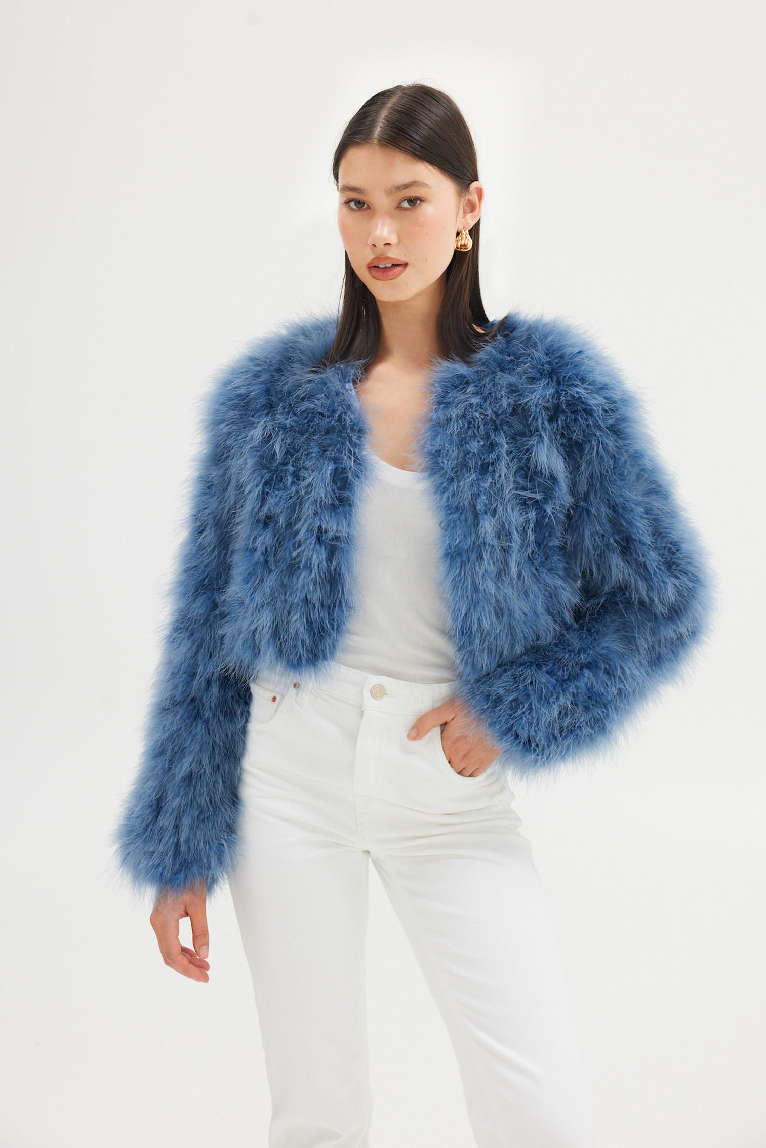 The perfect blend of strong shoulder structure and flattering feminine cropped length, the Marabou feather jacket oozes sophistication and style. Perfect for a chilly winter’s evening, the Manhattan can be dressed up or down no matter the occasion.